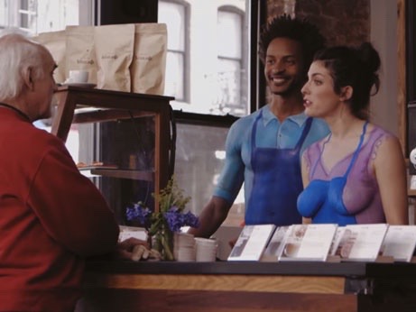 Io non sono molto amante delle grandi multinazionali, lo ammetto, ma ammetto anche che alcune volte creano delle campagne che sono stupende. Per esempio questa realizzata dalla Nestlè per promuovere la linea di prodotti Cofee Mate è davvero geniale. Praticamente Nestlè ha nottetempo preso un bar a New York, uno dei classici bar in fondo alla strada in cui i newyorkesi che vanno al lavoro si fermano a prendere un caffè e un donut prima di prendere la metro, e lo ha cambiato rifornendolo della linea di prodotti che voleva promuovere. Fin qui non ci sarebbe nulla di particolare. La particolarità sta nel fatto che dal momento che il caffè era gratuito e che i baristi (e alcuni avventori del bar che erano comparse) erano nudi, Il gioco di parole sta nel fatto che si volevano invitare i clienti a non prendere il caffè “naked” ma a macchiarlo con uno dei Coffe Mate Nestlè. I baristi non erano proprio nudi nudi, ma avevo il corpo completamente dipinto, certo che comunque saltavano all’occhio lo stesso. Vi avviso che il Natural Bliss Cafè è stato aperto un solo giorno nel Lower East Side, quindi non siete più in tempo.. Però potete vedere le reazioni dei clienti.. Buon divertimento!
