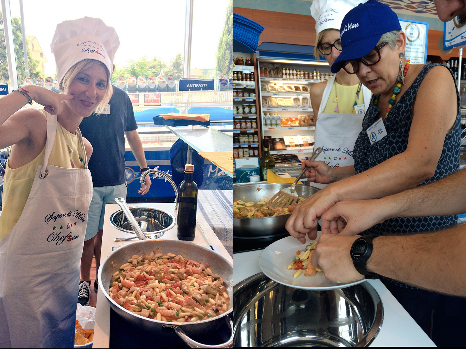 Ogni squadra ha dovuto realizzare un piatto utilizzando gli ingredienti contenuti in una mistery box che Sapore di Mare aveva pensato per noi e poi in una vera e propria sfida contro il tempo abbiamo fatto la spesa e preparato un piatto che rappresentasse la nostra squadra. Tutti abbiamo collaborato alla realizzazione dei piatti e poi ci siamo scatenati su Facebook, Instagram e Twitter nel postare foto e impressioni di questa squadra. Se siete curiosi potete ritrovare tutte le nostre foto con l’hashtag #ilmegliodelmarepolpo e #ilmegliodelmaregambero.