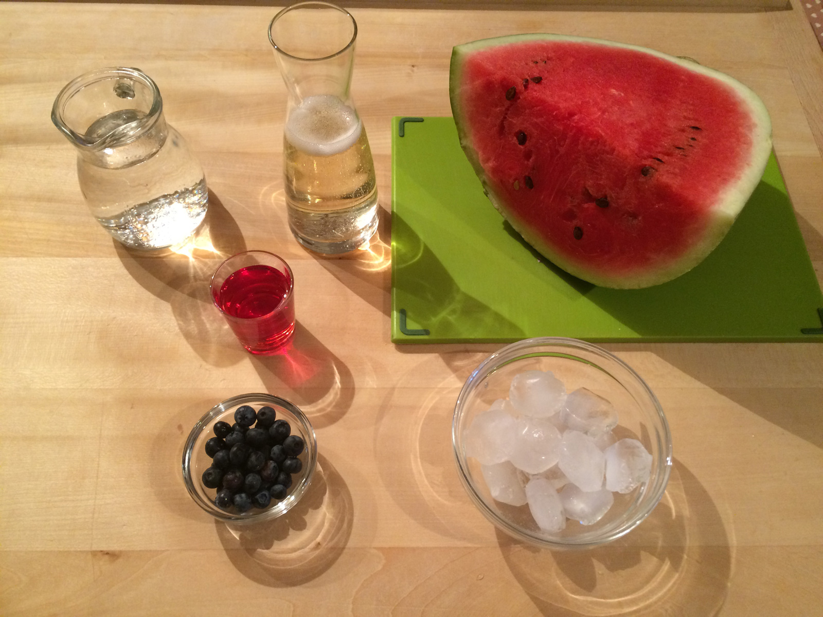 L’estate è l’occasione giusta per bere qualcosa di fresco e di diverso dal solito. A volta basta davvero poco per dare un tocco in più a un cocktail, personalizzandolo con un ingrediente, per esempio un frutto, che amiamo particolarmente. Un po’ di amici, un tramonto, una cena in terrazzo, un barbecue, sono davvero molte le circostanze in cui possiamo sbizzarrire la nostra fantasia e perchè no, deliziare i nostri ospiti. Io per esempio il giorno di ferragosto ho proposto questo aperitivo per iniziare il pranzo: 4 chiacchiere, un po’ di olive o di patatine ed il gioco è fatto. Anno passato vi avevo proposto un cocktail con i frutti di bosco e il basilico (qui ritrovate il post), quest’anno mi era venuta un’altra idea. Il cocktail che ho proposto è una rivisitazione del classico spritz a cui ho aggiunto della polpa frullata di anguria: volevo qualcosa di colorato ma che allo stesso tempo desse l’idea della freschezza. E cosa c’è di più fresco in estate che una bella fetta di anguria? Per essere poi alla moda, ho usato delle bottiglie della collezione 4 Stagioni della Bormioli, una cannuccia nera, uno spiedino di anguria e mirtillo ed eccoci tutti a bere insieme.