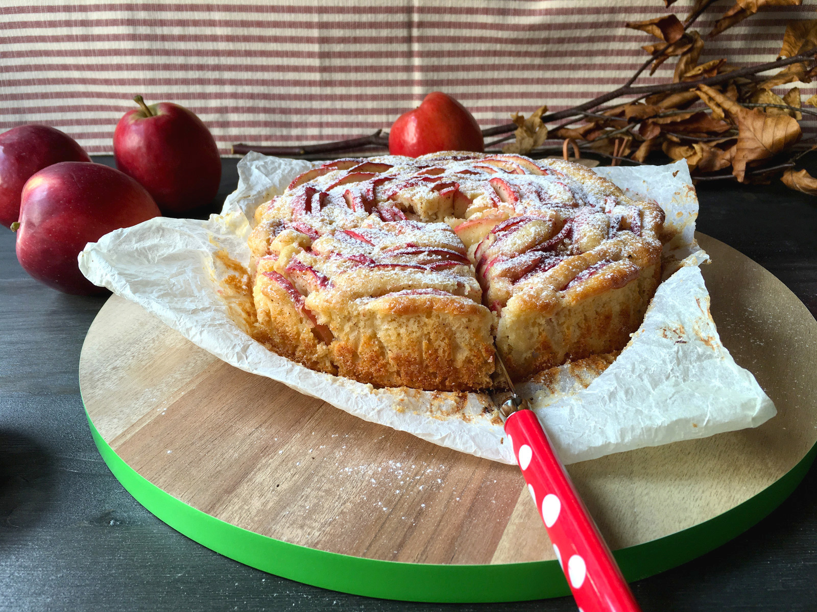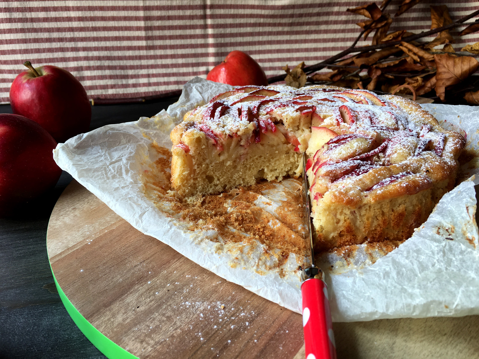 In questo weekend in moltissime piazze delle nostre città potete trovare i gazebo dell’AISM (Associazione Italiana Sclerosi Multipla), con una piccola offerta potete portare a casa un sacchetto di mele aiutando in questo modo la ricerca contro questa grave malattia. Potete scegliere le mele che più preferite (ce ne sono 3 varietà) e in questo modo potete fare qualcosa di utile per chi ha bisogno ma potete fare qualcosa di buono anche per voi! Io ho comprato il mio sacchetto di mele rosse, le classiche mele stark delicious e tornato a casa ho subito fatto una torta di mele. Le torte fatte in casa sono sempre infinitamente migliori di quelle comprate, perchè sapete davvero quello che ci mettete dentro, ma io in preda ad un vena salutistica ho preparato questa ricetta senza l’utilizzo di burro.