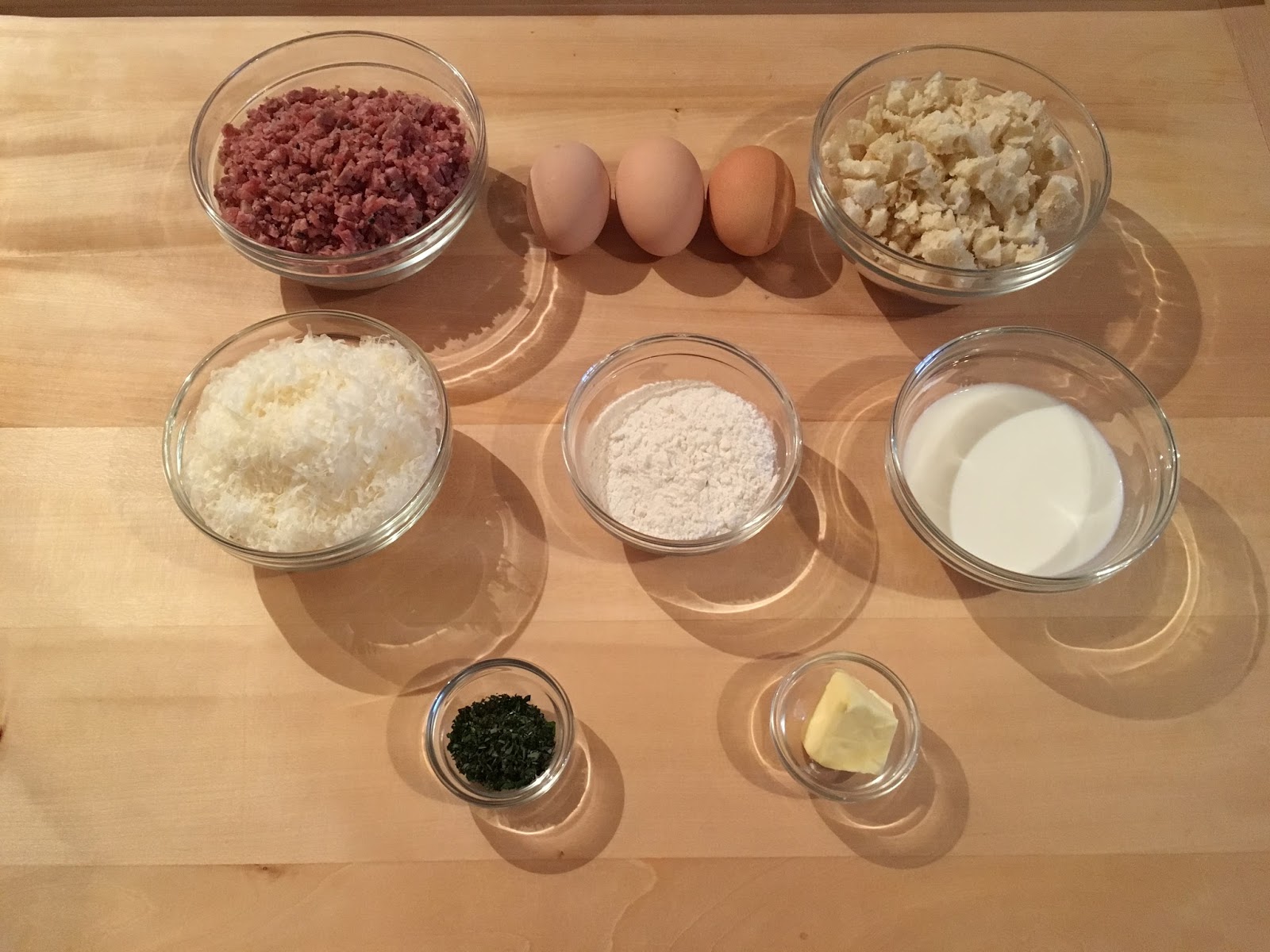 In una ciotola sbattete il latte con le uova, aggiungete la mollica e lasciate riposare per un’ora o finche la mollica non avrà assorbito tutti i liquidi. Nel frattempo battete a coltello le erbe aromatiche e il cotechino, fino ad ottenere una grana piuttosto sottile. Quando il composto di mollica, latte e uova sarà pronto, aggiungete il cotechino, le erbe tritate, il Parmigiano grattugiato e mescolate bene. Aggiungete anche la noce di burro e regolate di sale. Per ultimo aggiungete la farina un po’ alla volta (non è detto che serva tutta la dose..) fino ad ottenere un impasto piuttosto denso, lavorabile con le mani.
