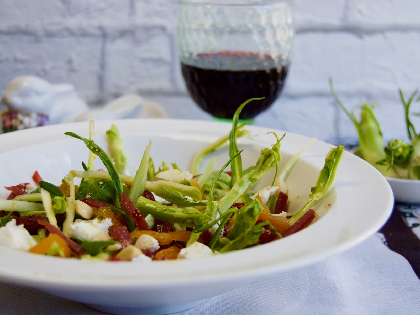 Mi lamento sempre quando vedo altri blogger che propongono ricette viste, riviste e straviste. Ormai ci sono delle preparazioni che tutti, ma davvero tutti siamo in grado di fare non abbiamo bisogno che qualcuno ci dica come fare. Per esempio in questi giorni ho visto un sacco di ricette di puntarelle alla romana. Mi piacciono molto le puntarelle, mi piacciono molto anche le puntarelle alla romana con le acciughe e i capperi, ma per dirla proprio alla romana a ‘na certa anche bbasta! Mi sembra riduttivo riproporre sempre la solita cosa, le puntarelle per dire sono così buone che se ci fermiamo un attimo a ragione possiamo pensare ad altre decine di abbinamenti. E uno di questi è quello che vi voglio proporre oggi, perchè si è vero che è appena passata Pasqua, tutti abbiamo voglia di stare leggere e un’insalata detox con queste prime belle giornate è proprio quello che ci vuole!
