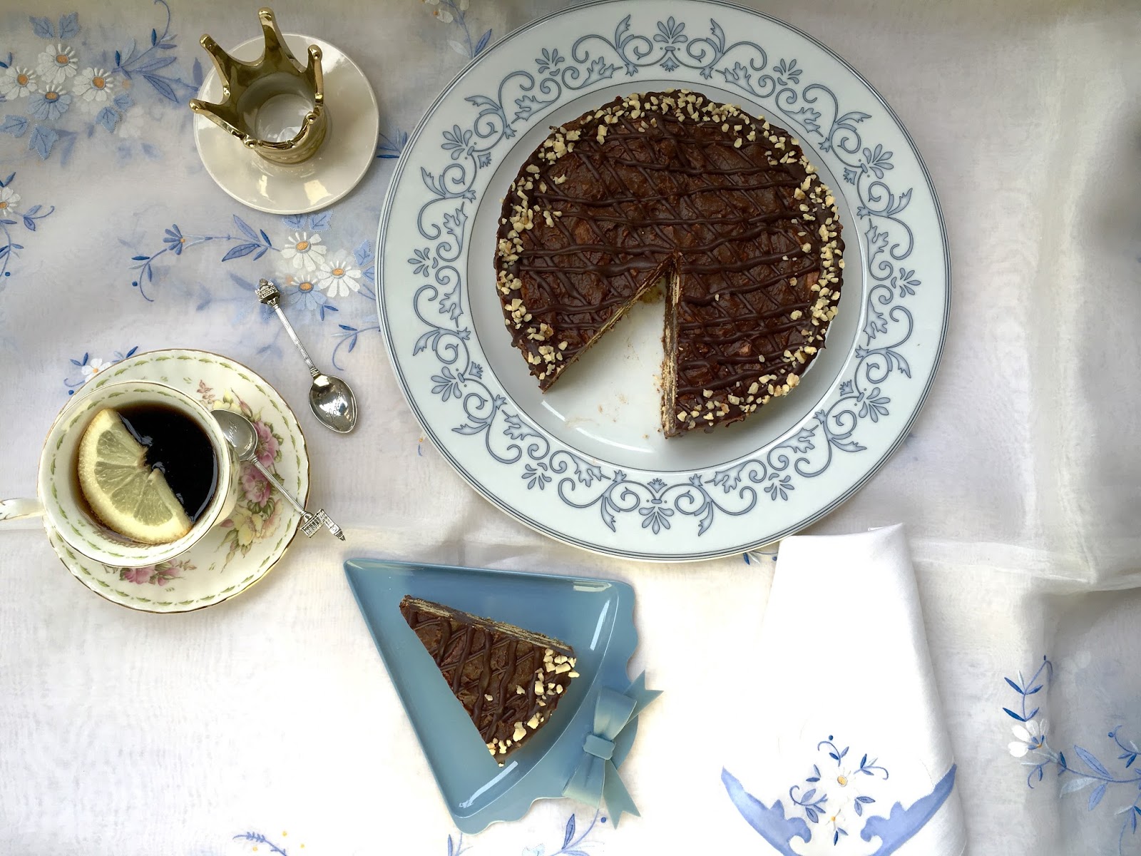 A questo punto il dolce è pronto, non vi resta che toglierlo dalla tortiera ed eliminare le strisce di carta. Se volete potete decorarlo con un po’ di glassa al cioccolato all’acqua e della granella di nocciola, come ho fatto io.