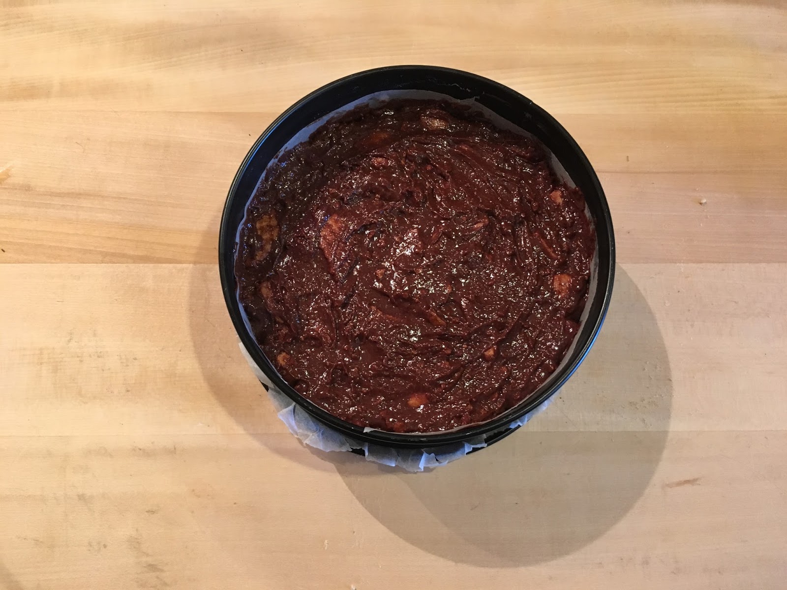 Versate tutto il composto nelal tortiera e livellate con il dorso di un cucchiaio in modo da non lasciare spazi vuoti, battete un paio di volte la tortiera per eliminare eventuale bolle d’aria e poi spostate in frigo.