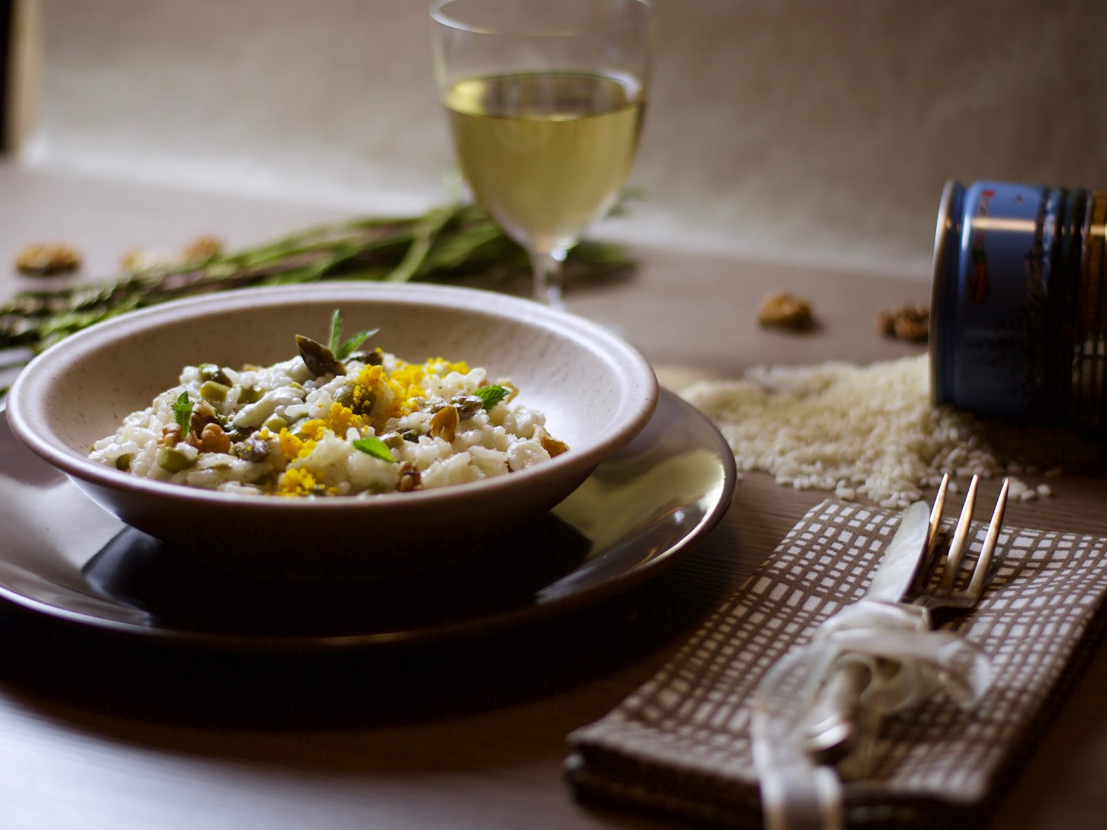 Gli asparagi sono l’ingrediente principale della ricetta che vi propongo oggi. Io amo molto gli asparagi e quando sono di stagione ne mangio veramente tanti, perchè ci sono un sacco di modi per prepararli e tutti buonissimi. Tra l’altro sono ricchi di sali minerali e di vitamine, il che ovviamente non guasta mai. Oggi ho deciso di preparare un risotto, ma non il classico classico risotto con gli asparagi! Ho voluto infatti cambiare alcune cose: per mantecare ho usato del caprino perchè volevo un sapore più fresco e poi ho aggiunto delle foglioline di menta per dare dell’aromaticità in più. E poi un tocco particolare, il tuorlo polverizzato, per dare personalità al piatto!