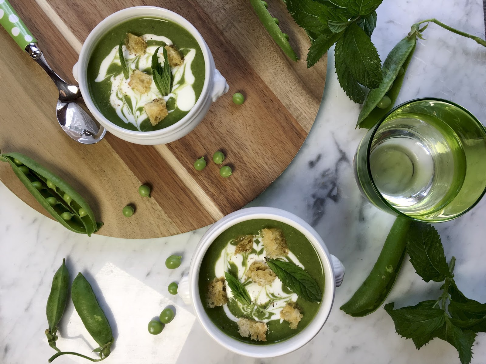 Per fare questa zuppa ho usato i piselli, perchè si trovano freschi e sono molto più buoni di quelli congelati, perchè sono verdi e il verde si sa fa primavera e poi usato la menta perchè si sposa perfettamente con i piselli e le prime foglioline sono morbide e perfette per questa zuppa.