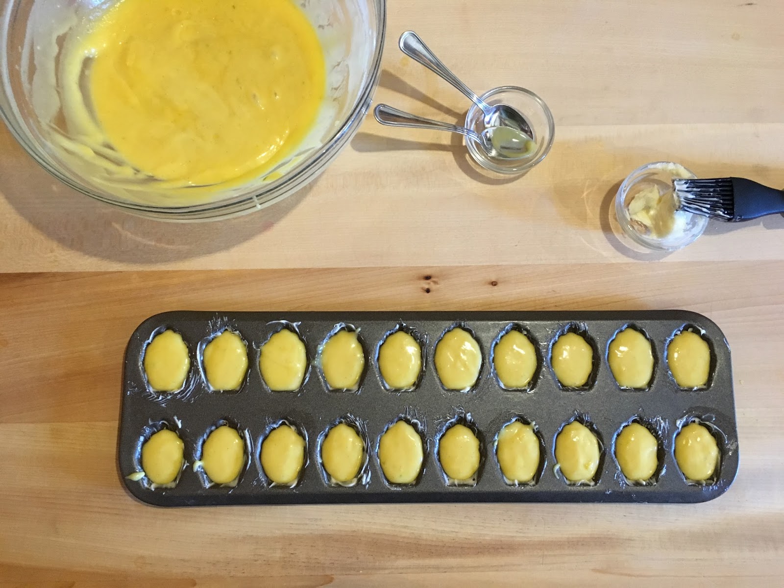 Imburrate molto bene la teglia con gli stampini a forma di conchiglia e poi versate in ognuna un cucchiaino di impasto in modo che sia ripieno per 3/4. Mettete di nuovo in frigo per qualche minuto prima di infornare. Quando la teglia sarà ben fredda infornate e cuocete 5/6 minuti le petites madeleines. Se invece avete lo stampo per le madeleines grandi cuocete per 9/10 minuti.