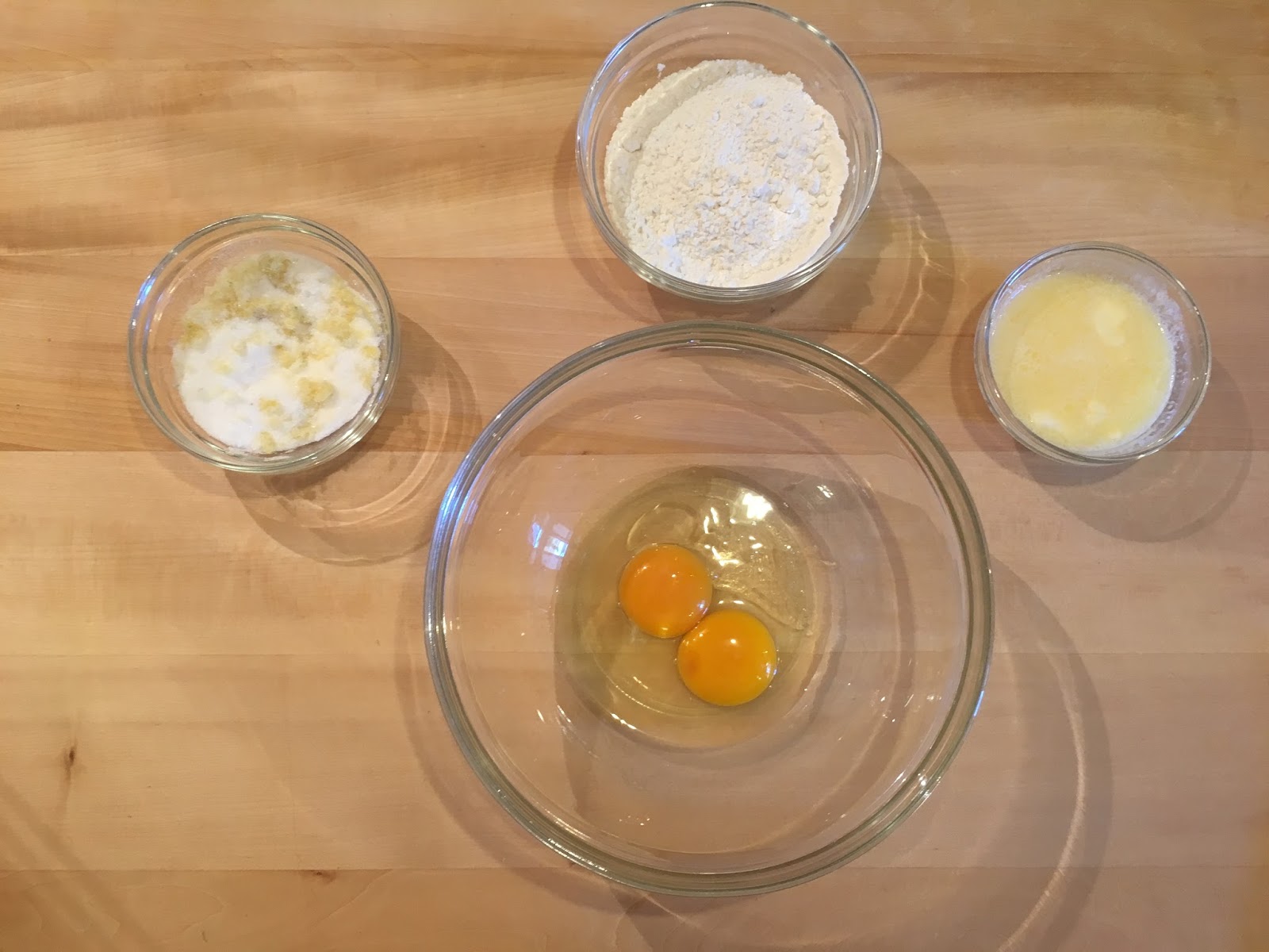 Con un microplane grattate la buccia di un limone e mescolatela con lo zucchero e il pizzico di sale, nel frattempo sciogliete il burro con il latte. A parte miscelate la farina con il lievito e setacciate accuratamente. In una ciotola mescolate le uova con lo zucchero e il miele, poi aggiungete il burro sciolto con il latte e infine aggiungete la farina con il lievito, un po’ alla volta per non formare grumi.