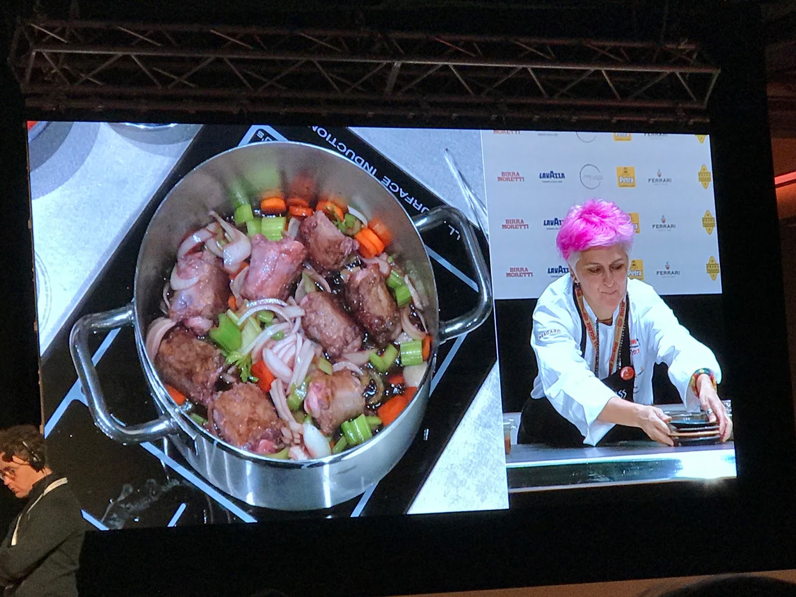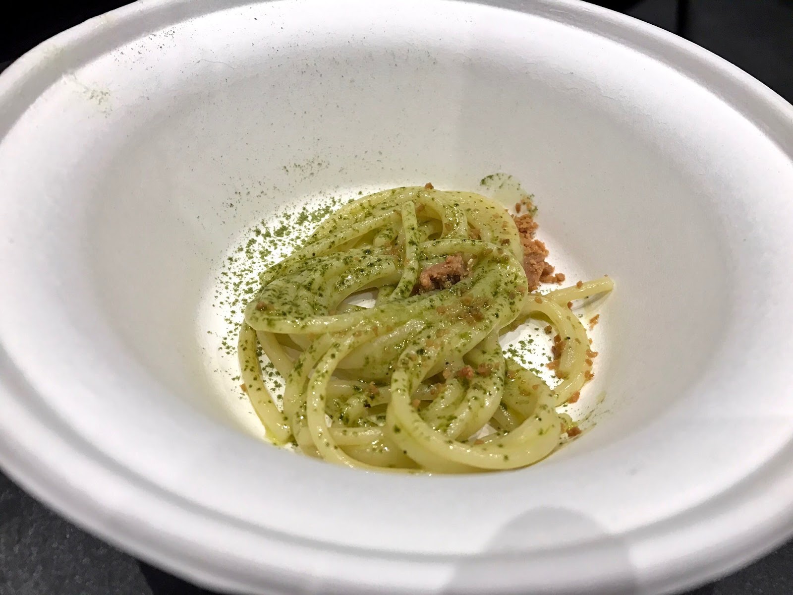 Nella giornata di domenica ho assistito agli interventi di Carlo Cracco, di Cristina Bowerman, Matteo Baronetto, Eugenio Boer e Heinz Beck e tutti mi hanno lasciato un’idea. In particolare sono rimasto affascinato dal brodo denso di pollo ottenuto per condensazione di Cristina Bowerman ma soprattutto dalla pasta con il tè matcha di Carlo Cracco.