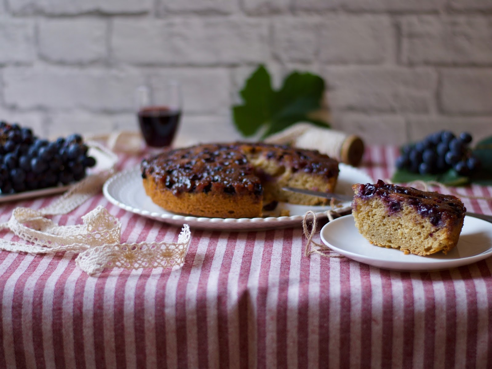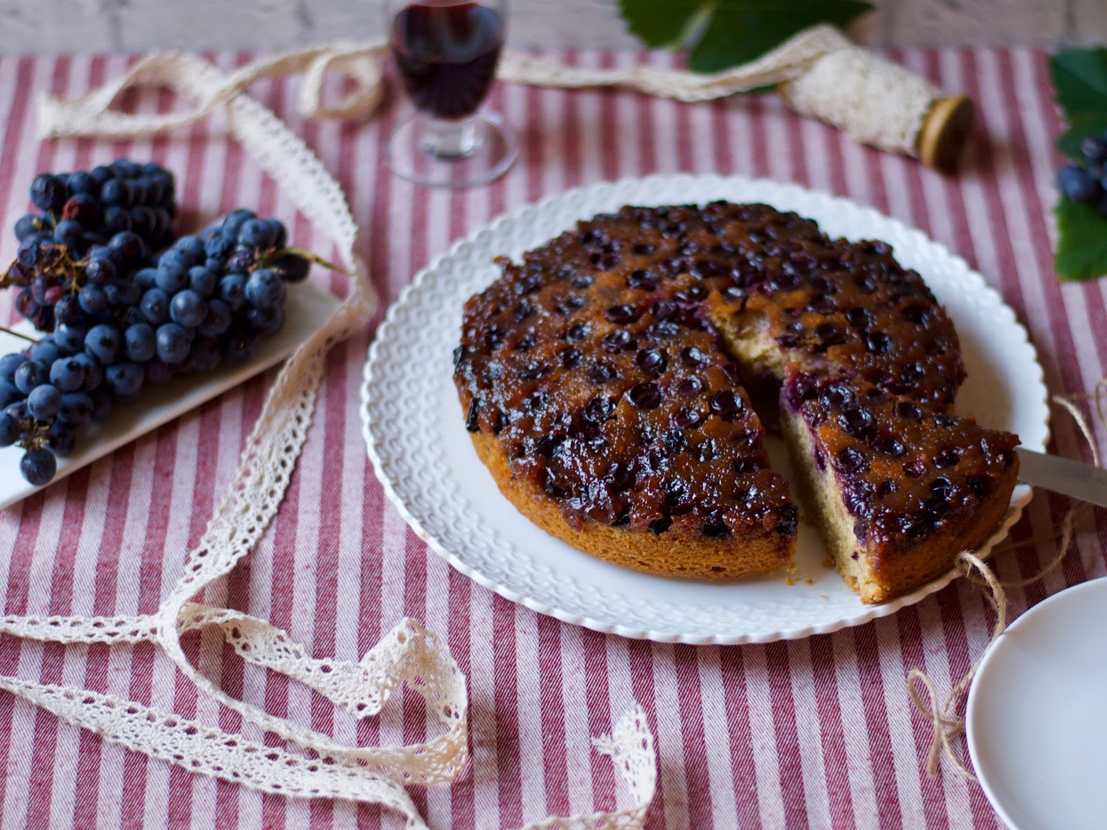 Quindi ananas, mela o ogni altra frutta può essere utilizzata per questa torta. La versione che vi propongo oggi infatti è un po’ diversa e l’ho pensata prendendo spunto da una ricetta classica toscana: la schiacciata con l’uva! La schiacciata con l’uva è probabilmente il mio dolce preferito di questa stagione: è una schiacciata soffice, cioè come dite voi una focaccia, preparata con dell’uva nera a chicco piccolo! In cottura lo zucchero si caramella e i chicchi si aprono colorando la superficie di rosso: la adoro!